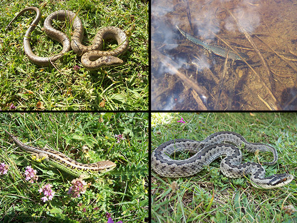 Не помалку е застапена и фауната влекачите (херпетофауна) на овој масив. Регистрирани се 17 видови влекачи, што е скоро половина од вкупниот број во Македонија и тоа: Присутни се следните видови влекачи: шумска желка (Testudo graeca), ридска желка (Testudo hermanni), слепоoк (Anguis fragilis), планински гуштер (Lacerta agilis), голем зелен гуштер (Lacerta trilineata), зелен гуштер (Lacerta viridis), живороден гуштер (Zootoca vivipara), балканска гуштерица (Podarcis erhardii), ѕиден гуштер (Podarcis muralis), жолт смок (Dolichophis caspius), планински смок (Coronella austriaca), шумски или ескулапов смок (Elaphe longissimus), белоушка (Natrix natrix), рибарка (Natrix tessellata), поскок (Vipera ammodytes), шарка (Vipera berus) и степска лутица или остроглава шарка (Vipera ursinii). Остроглавата шарка е глобално загрозен вид кој се наоѓа на црвената листа за загрозени видови во Европа а кај нас го има статусот на строго заштитен вид.